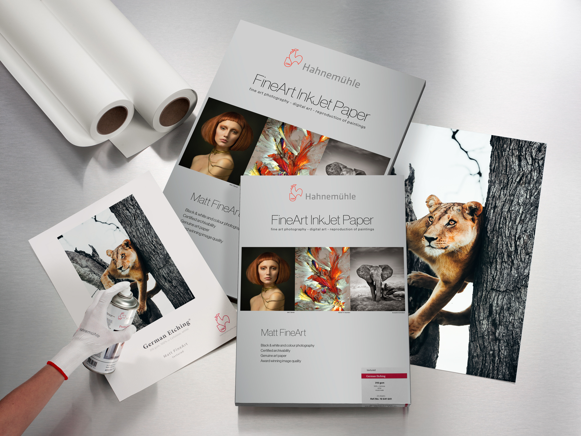 Hahnemühle German Etching® is a traditional mould-made copperplate printing paper, complete with an inkjet coating designed especially for FineArt applications. The white art paper made from 100% alpha cellulose is characterised by its extraordinary velvety tactile feel and its fine, clearly defined felt structure. The unique surface texture adds a very special touch to images, showcasing them in all their splendour with impressive three-dimensional effect and depth. The premium matt inkjet coating guarantees outstanding print results with excellent reproduction of colour and detail, deep black and optimum contrasts. German Etching® is acid- and lignin-free and meets the most exacting requirements in terms of age resistance. This heavyweight FineArt inkjet paper is one of the most popular paper for FineArt prints and art reproductions thanks to its characteristic tactile feel and surface texture. German Etching® is a registered trademark in the US.