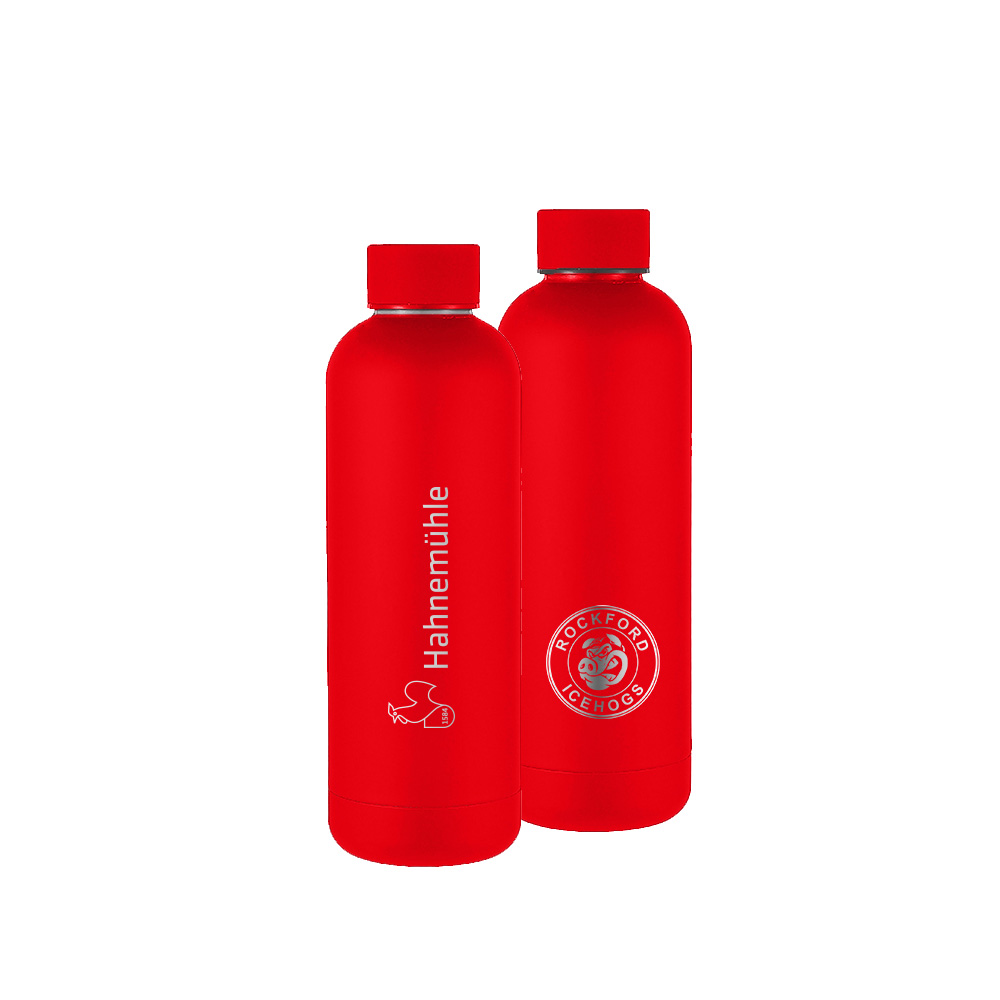 Now also with stylish and sporty branding from our ‘cool collaboration’ with two ice hockey teams in Germany and the USA. The grey bottle is emblazoned with the Schwenninger Wild Wings logo, while the red bottle boasts the branding of the Rockford IceHogs as stylish engravings.